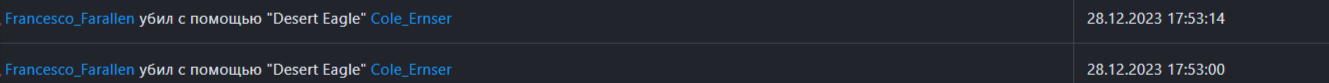 1. Игрок Francesco_Farallen (Mask 343371) убил с пистолета топикстартера жалобы.