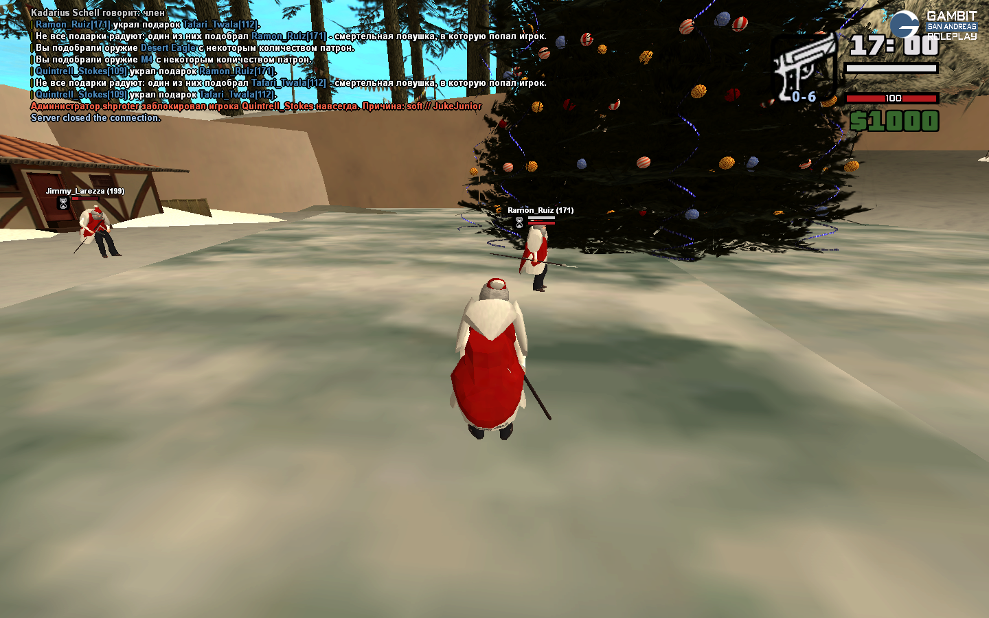 Суть жалобы: Я играл на эвенте, даже не понимаю за что меня забанили, просто софт, а я играю без читов. Приведу пример Luna_Cortes, данного игрока банили много раз на эвенте, после сразу разбанивали, хотя по игроку видно что использует сторонние скрипты, я выстрелил обойму мки в ёлку, убил типа с подарком, сразу получил свой бан, прошу доказательств от админа, или же разбан, по скольку банят не тех игроков.