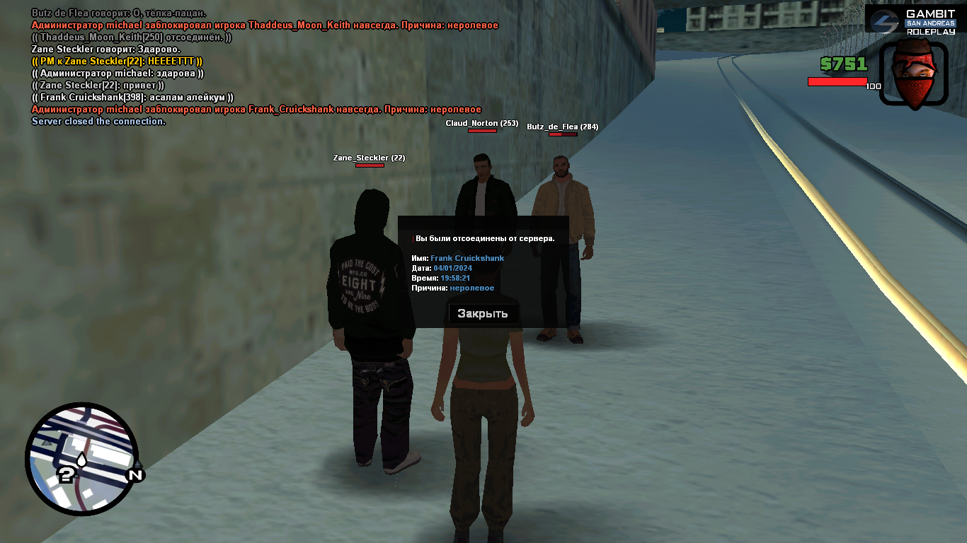 Суть жалобы: меня отмудохали скинхеды, я как фембойчик, пошёл жаловаться старшим, пожаловался тем. В рацию если что, они приехали и прогнали их, старшие собственно решили выяснить за что со мной так, и мы поехали искать их. Нашли их возле моста, после чего мне прилетает бан. Если ты, админ, думаешь что я взял дигл в активный, так вот. Это потому что на кольте у меня много пт, и если я умру, у меня отлетел дигл. Спросишь, почему же я просто не убрал дигл? Да потому что, думал что те будут стреляться, и ответил хоть как-то. Жду обьяснения моего бана.