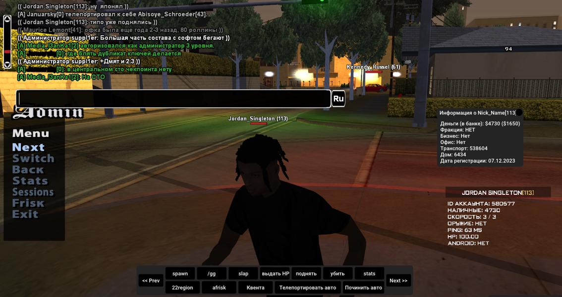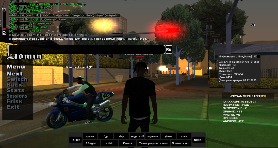 Суть жалобы: Ну давайте так подумаем, парень гуру всех фракций решил влезть в разговор и нести чушь что все фракции банд, в основном состоят из дмщиков и отлетают за ДМ и 2.3. Видимо тебя, саплер, очень задело то что ты попытался поговорить с нами а я тебя прогнал в грубой форме. Не считаешь ли что некрасиво с твоей стороны влезить в чужой разговор, про фракции, игру, когда никому не интересно твое мнение сверхразума?