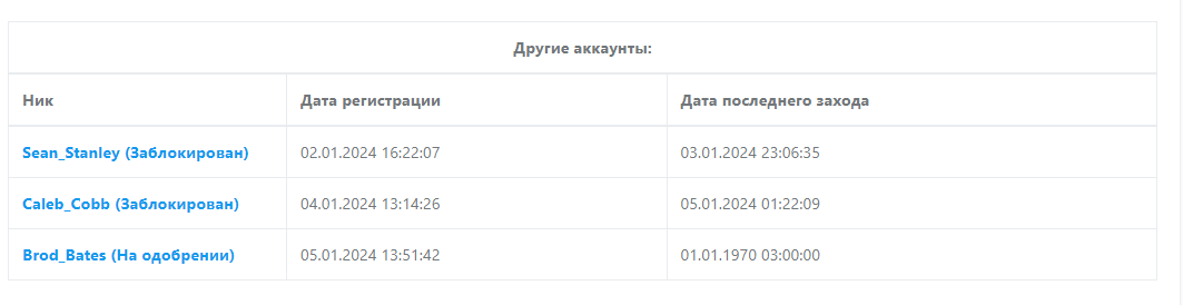 первый забанен за читы, мне тогда лк банили, но разбанили, второй за несерьёзную игру на 5 дней, прошу одобрить перса