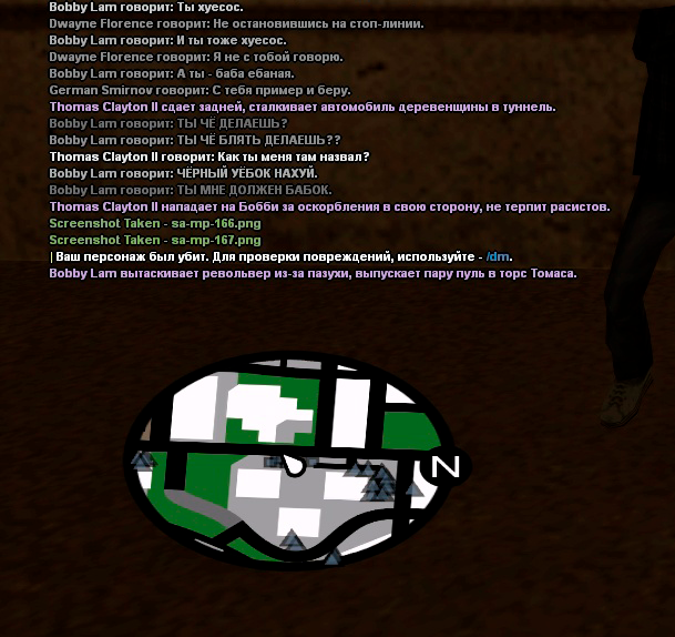 В-четвертых, автомобиль Бобби был не скинут, а спущен в туннель на невысокой скорости толкая задним бампером за его неоднократные оскорбления и расизм в сторону моего персонажа.