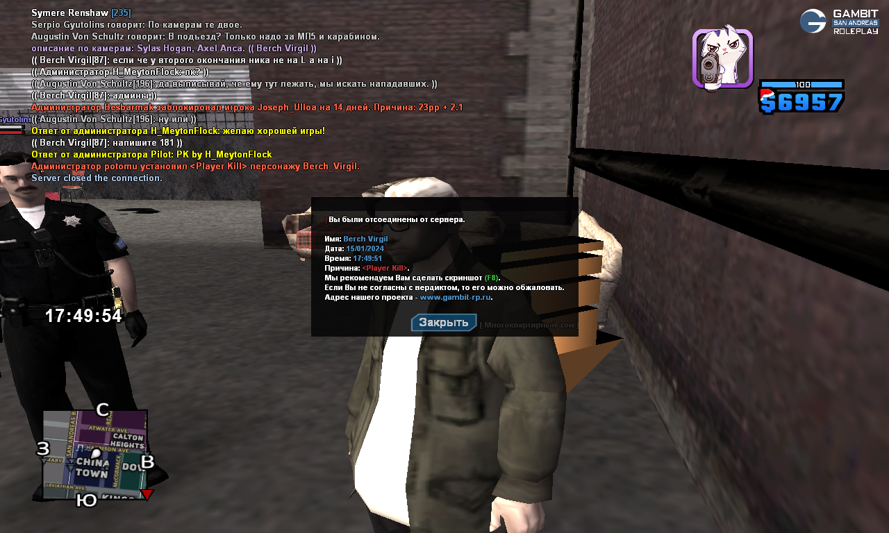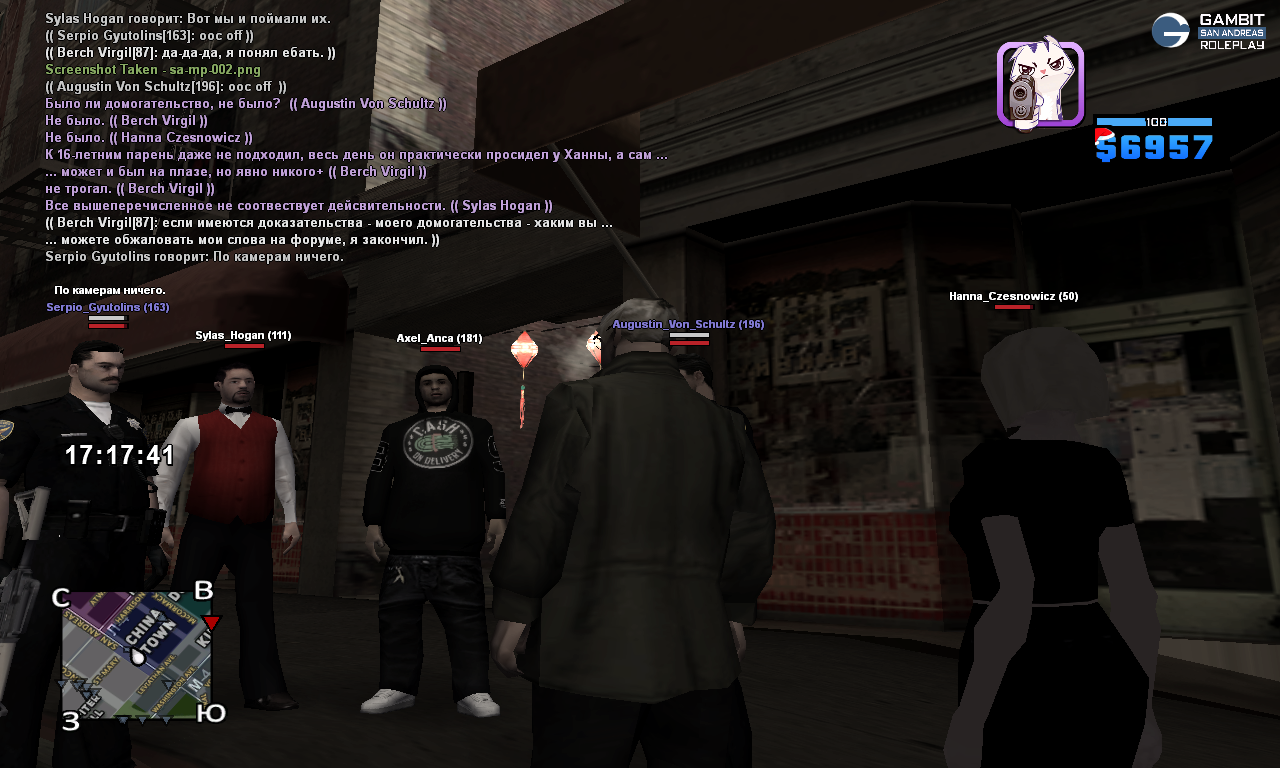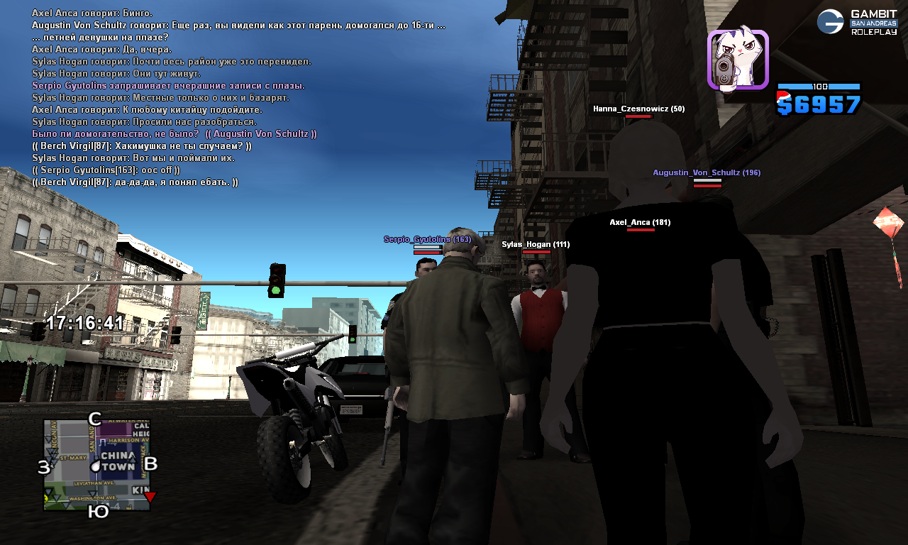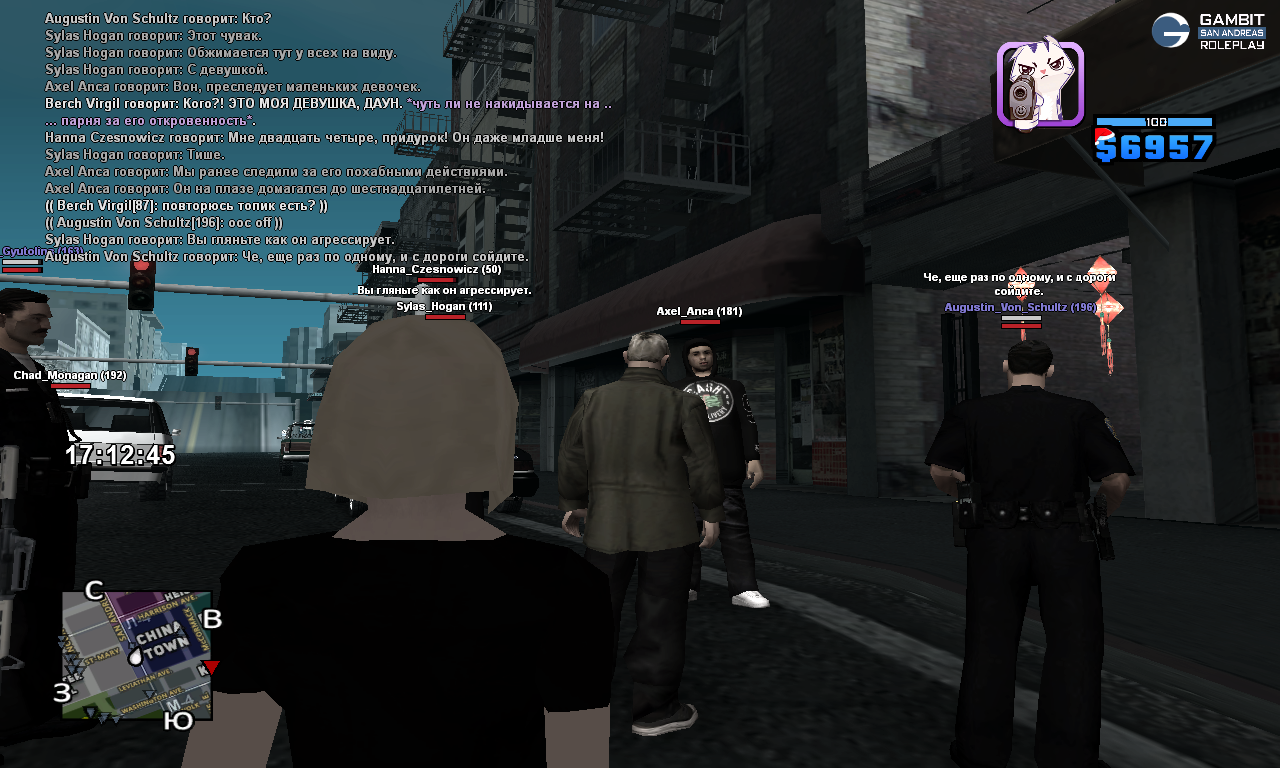 Сегодняшний день: Играю я со своим соигроком Hanna_Czesnowics и мы в ic обычная парочка. Ну как парочка, я парень который любовник, а она изменяет своему жениху. Они подходят и начинают доебыватся до меня мол я педофил. На каких основаниях? Почему? Они впервые меня видят, не знакомы со мной и я даже с ними не пересекался. Говорят что был на плазе и домогался до какой-то 16-летней девочки. В итоге отыграли за меня мол что следили за мной множество дней, хотя я зарегал этот акк вчера обедом или утром, я не помню уж точно. И с ними уж точно не пересекался и не играл. Аккаунты видно было по /pame, либо с другого ЛК, либо твинк который совсем недавно вышел с мороза, ведь у первого дата регистрации 11 числа. А у второго с 10 месяца, правда интересно получается? В итоге я вызываю от свидетелей копов мол тут доколебываются до меня и моей /возлюбленной/ в итоге они играя в свою пользу, они в открытую оскорбляют меня и девушку за спиной офицеров, почему-то офицеры игнорят и успокаивают нас, а не провокаторов. Которые наговорили полной хуйни копам. (( также вернемся к моменту с созданием моей роли, на то время я был только два раза за вчерашний день в СФ, обычно я тусовался в ЛС и пытался найти гейм какой-то, при этом половину времени я потратил на то чтобы сделать улучшение идеи по поводу очистки граффити, которую отклонили к сожалению )). В итоге разошлись, я пошел с девушкой домой но вот только беда оставалась в том что буквально через пять минут, они узнали где мы живем каким-то хуем, хоть они даже в Чайна-Тауне не были и не видели куда мы шли, возможно использовали камхант чтобы следить за нами. В итоге, подьезжая к Чайна-Тауну, мы уже вошли в помещение и пошли домой, решил посмотреть в глазок а они прямо перед нашими дверьми бегали и искали чтобы войти без отыгровок в дверь и возможно убить нас. В итоге моего соигрока крашит и сказал что не сможет войти, ну решился выйти из помещения и как только вышел из него, мне прилетает пару пуль и даже среагировать не успел как тут же получил пизды. Маску они только-только одели и по предпоссылке какого-то стукачества, я ещё и оказался в ПК? Доказать этого они не смогут, почему стукачество если сами доебались и вызов был сделан от вида свидетелей, я не пойму. Вообщем блять интернет-герои.