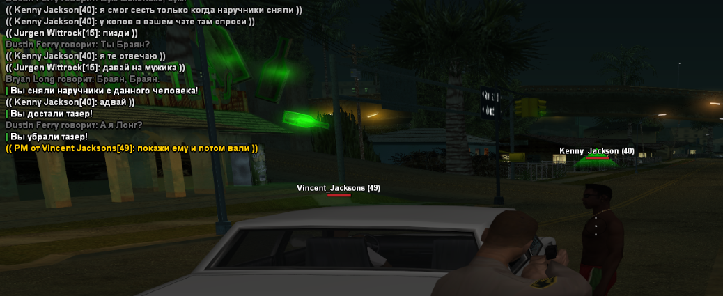 Суть жалобы: совсем случайно попал на всеми любимые 10 бутылок и арестовал кенни джексона, который мне в оос на протяжении минут 10 доказывал, что не может сесть в крузер поскольку в наручниках почему-то это сделать не может, попытался обмануть, а потом и вовсе со своим дружком уехал, когда неоднократно отыгрывал, что усаживаю его в салон крузера