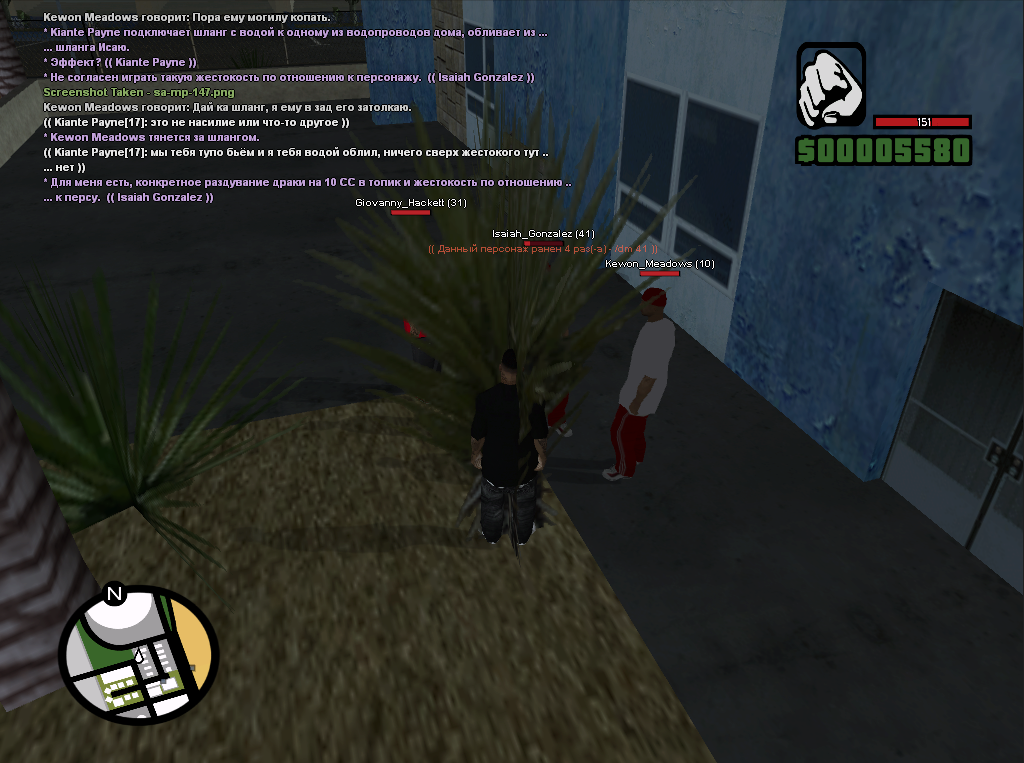 Суть жалобы: Игра в свою пользу (Нашли при ребятах пистолет и отыграли в /do Где находится пистолет? На что те отвечают: Дома. То бишь переносят оружие в инвентаре и отыгрывают его наличие дома) + использование МГ в /do, после этого один из парней (Malik_Wulard) берёт и ливает из игры отыграв смерть от побоев в драке.