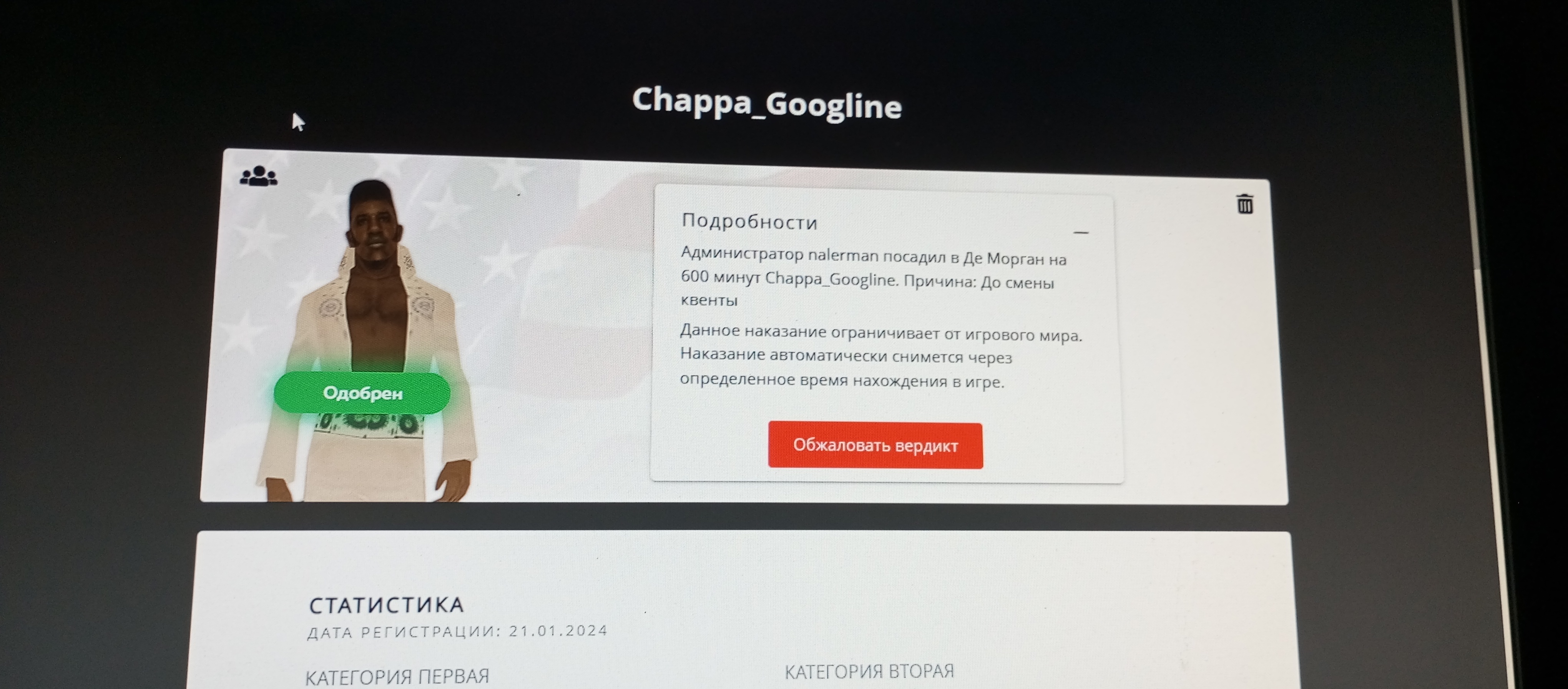 Суть жалобы: Что ц меня в квенте не так? Я не собираюсь её менять только ради смены в ней действующего ника. Че мне делать? Месяц в деморгане сидеть?