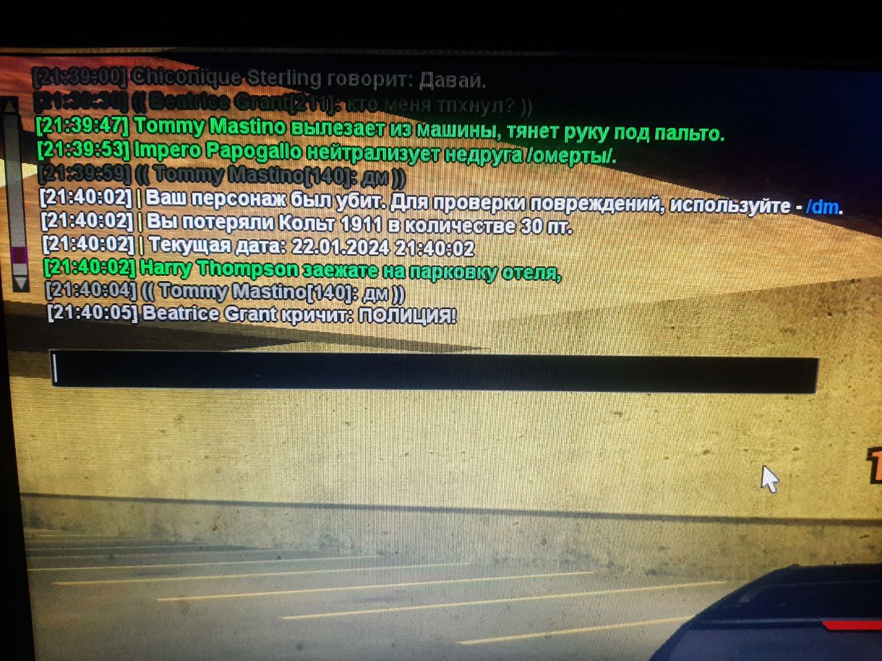 Я только вышел из машины и игрок с отигровкой - /me нейтрализует недруга/ омерты - убивает меня и моего друга