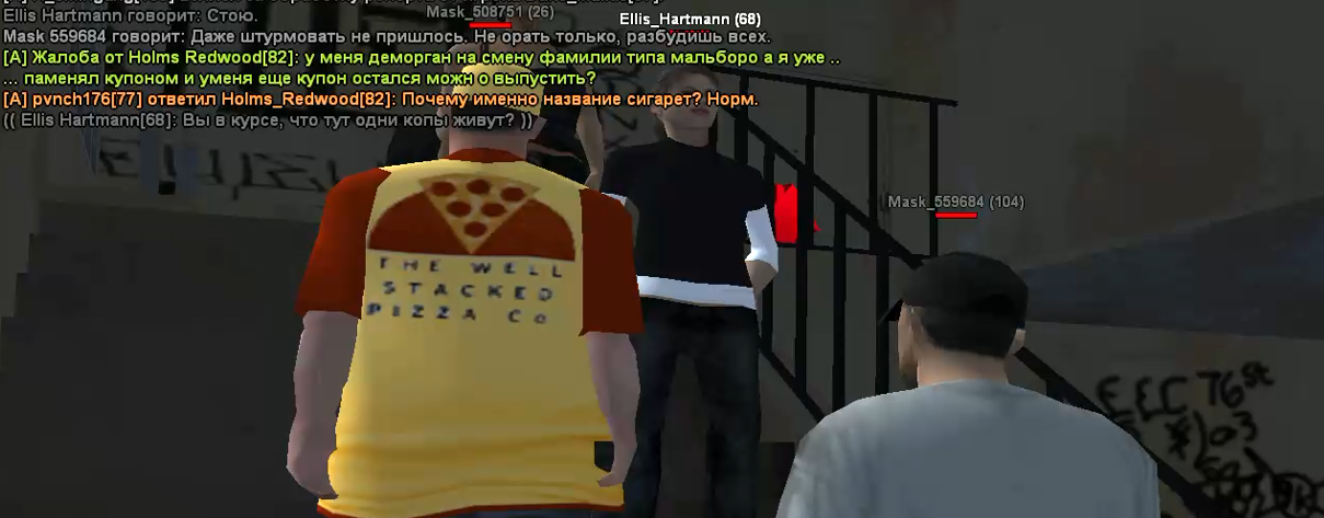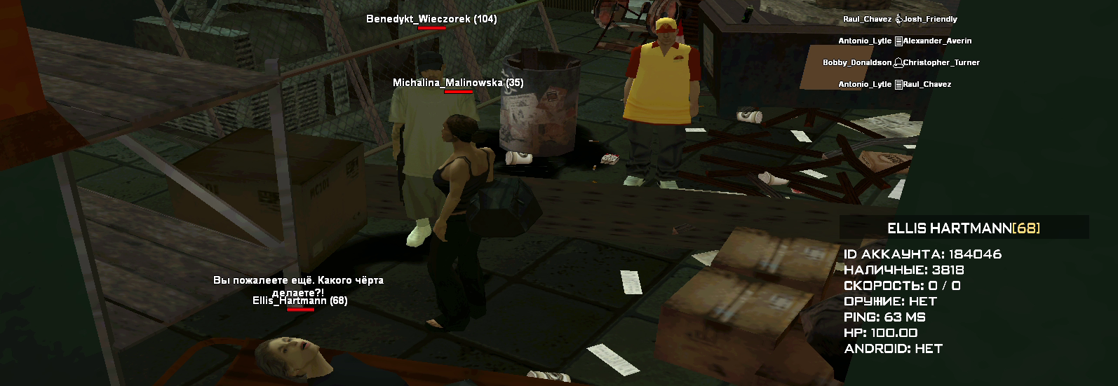 за ситуацией я следил с самого начала, ещё даже до того, как она собственно и началась, потому что бегая по спеку выловил трёх полностью заряженных пареньков, которые явно это сделали с определенной целью. выловили тебя с карабином у дома, все, что ты выронила на протяжении двух минут ситуации это одно слово. почему игроки отыгрывая свои эмоции, переживания, какие-то иные действия должны сталкиваться с подобным пофигизмом, особенно от игрока са-ес?