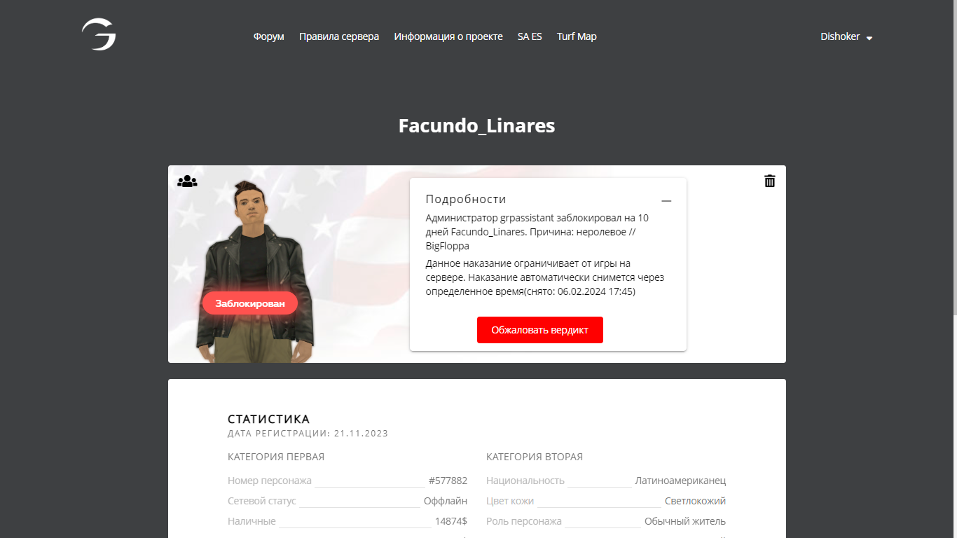 Суть жалобы: А можно узнать по какой причине бан? Какое неролевое поведение от меня было?