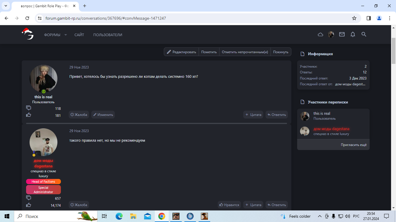 Так неролевое или преимущество. Сначала ты о том что я обкуриваюсь на смене, а теперь об преимуществе.Да меня как-то не волнует, где ты их делал. Бегал ты с 160 хп именно на смене. И получал нечестное преимущество над крайм.игроками