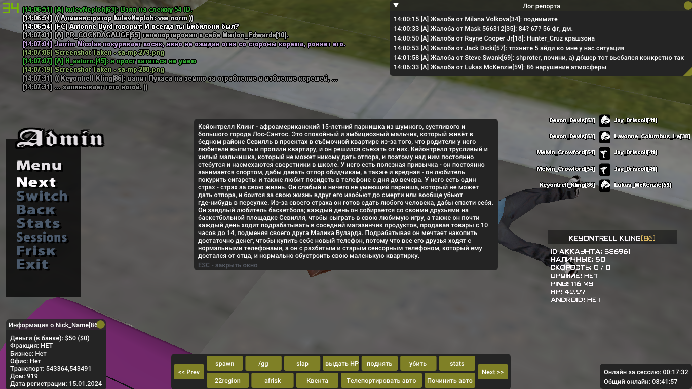 Суть жалобы: Да заебали. Я понимаю за что забанили Лавонна, а Кейонтрелла за что?! Я не могу запинать ели живого чела которого ранил мой кореш? Чё за бред ваще? На скринах видно что открыт огонь только по Джею за ограбление, но на самом деле ранены были все кроме Джаррима и Мелвина.