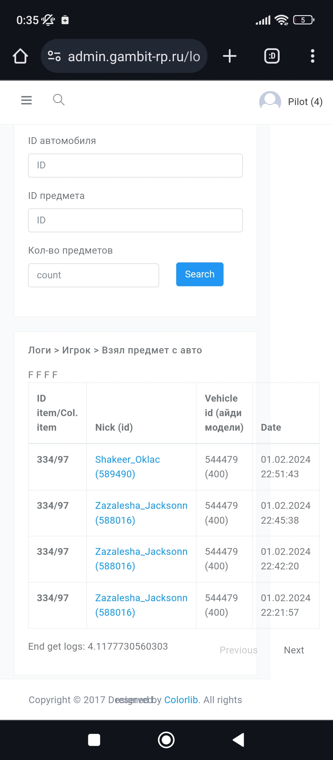 Суть жалобы: пока отходил в афк у моего друга (Zazalesha Jacksonn) инвизер спиздил мп5 через бардочек из моей машины (544479, Landstalker), произошло это примерно в 22:51