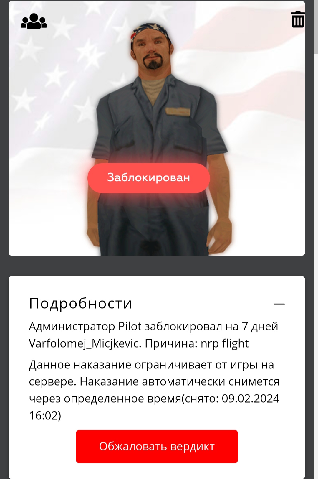 Дата и время наказания/нарушения: 2 Фев 2024