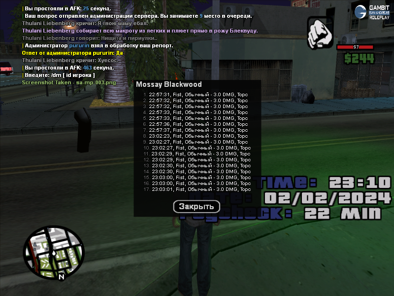 Вот как только в афк жалобу писал, ещё по мне ударов нанес и ушёл.