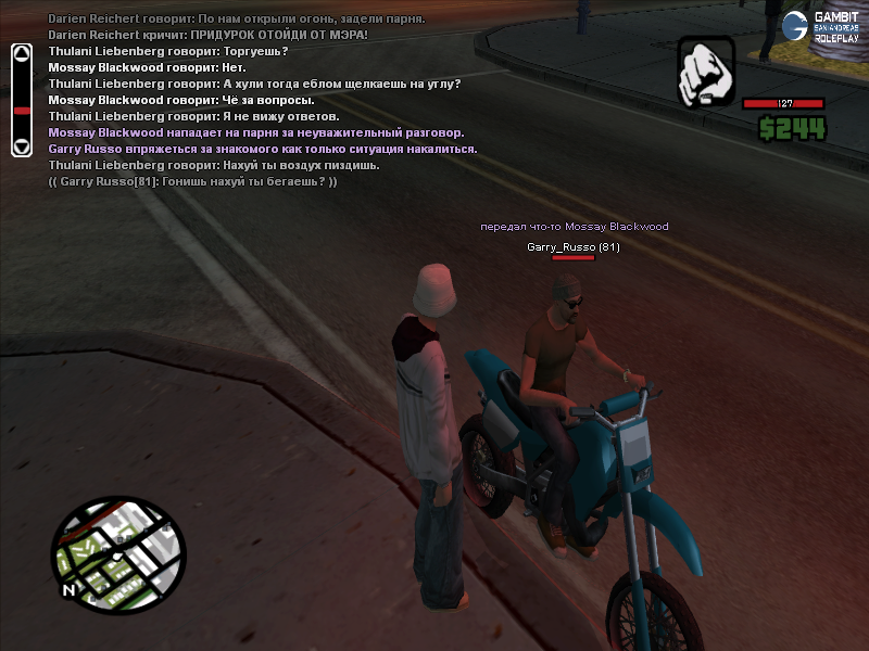 Суть жалобы: Уход от тех. драки, бегунок. Спросили у него зачем он это делает, тот ответил потому что драйвера позволяют. Не вижу адекватной игры это этой персоны. Стою, никого не трогаю около своего дома, продаю наркотик в основном, щас просто отдыхал. Подходит начинает провоцировать на драку, как начинаю его избивать тот убегает.
