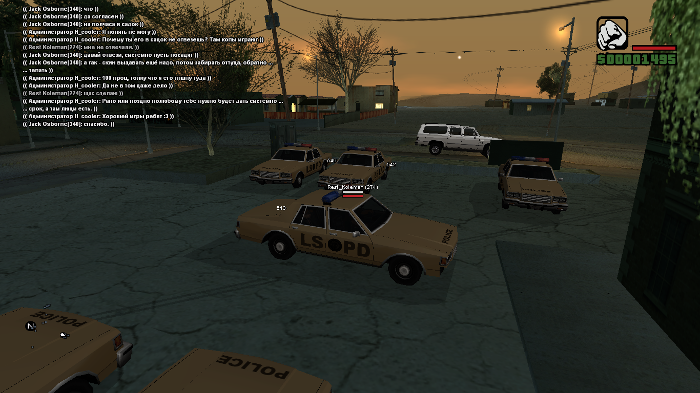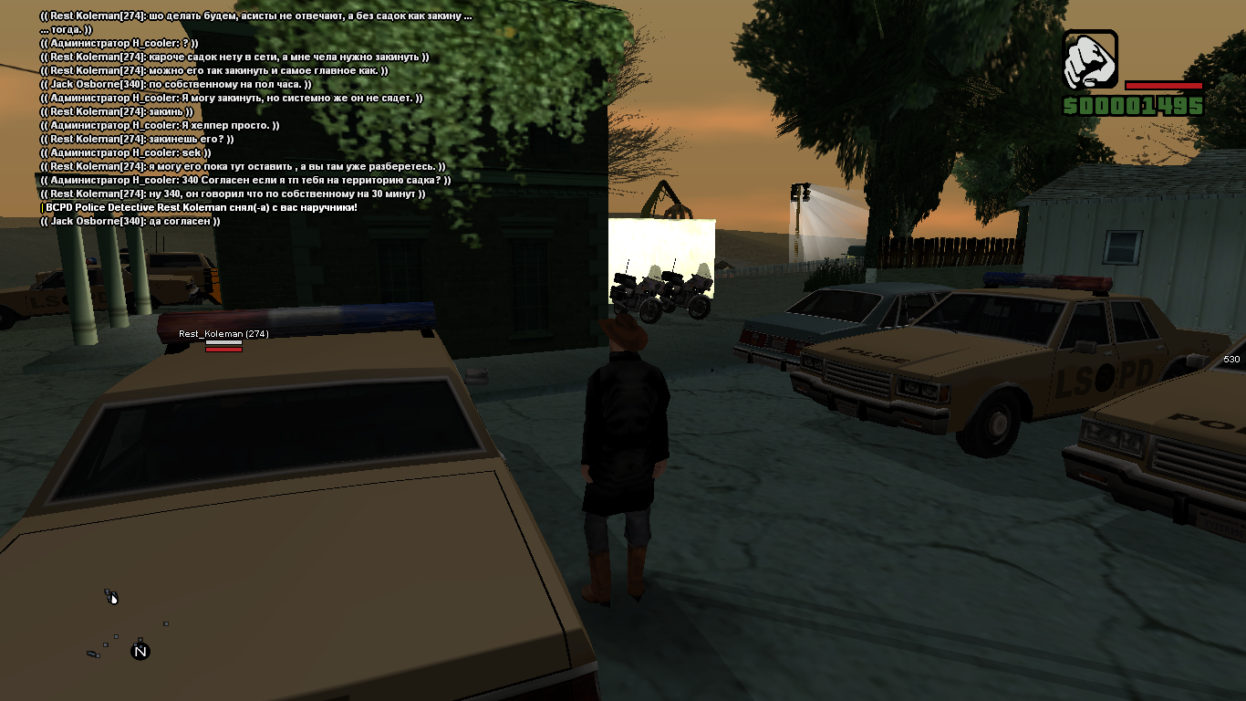 Суть жалобы: играю группу электроборцев, мой персонаж в розыске за диверсии, - был траффикстоп в отношении меня, погоня, - дальше всё хорошо отыграли, - я попросил копа посадить меня в садок на 30 минут, по собственному желанию.