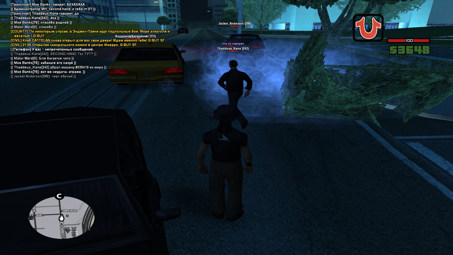 Суть жалобы: посадил в де морган за то, что я решил доигрывать ситуацию с дтп, с которой ушел Jacket_Anderson назвав водителя "чертом ебучим" будучи в данной ситуации не правым