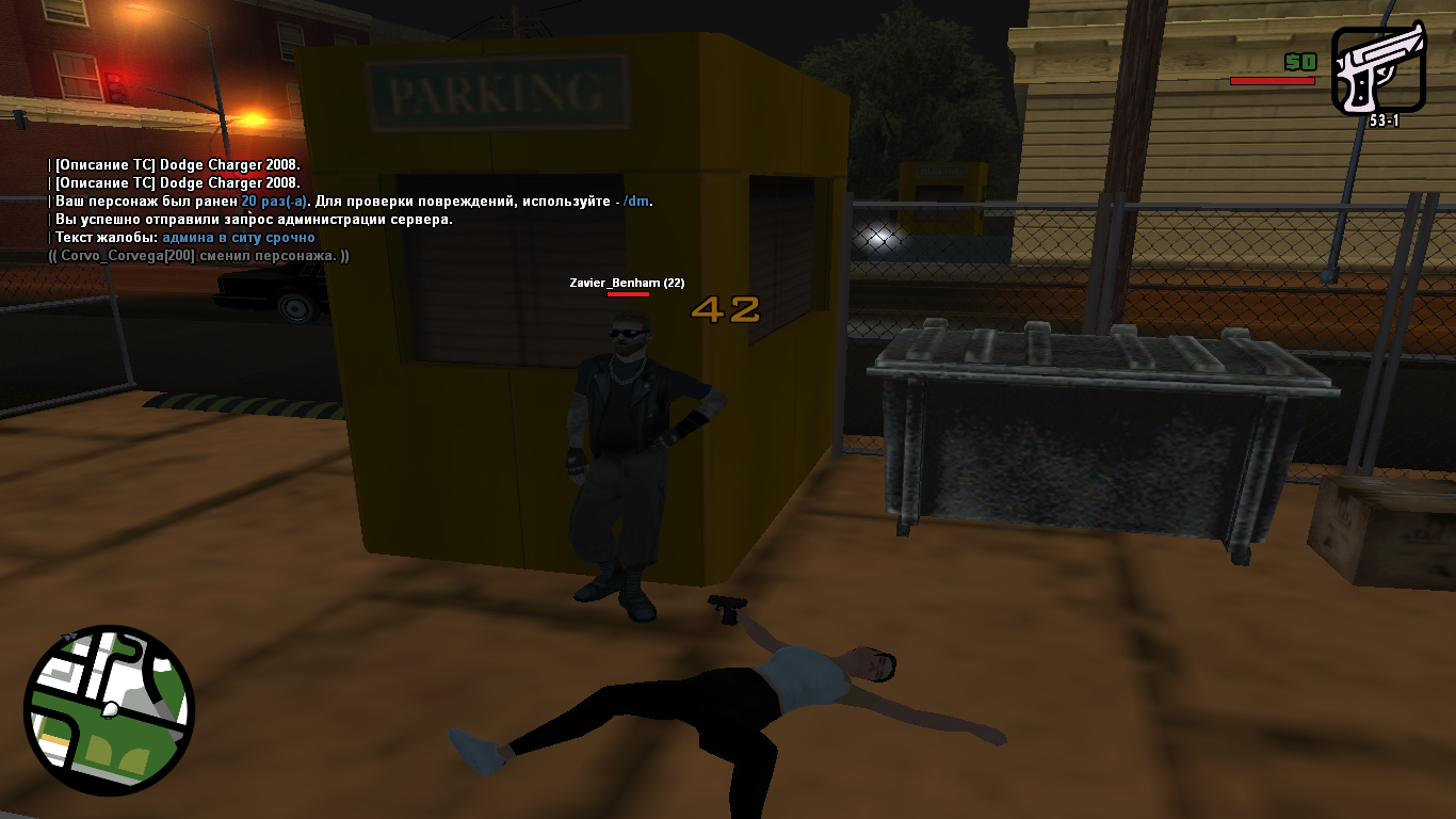 Как только ты снова находишь меня по ВХ, сразу приступаешь ебашить меня без каких либо отыгровок. Была экстренная ситуация, я по тебе начал палить, а ты хилил себя аптечкой(собственно потом был и убит без отыгры когда со стадии цивилёныш поднялся)