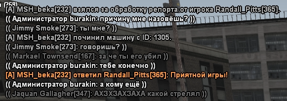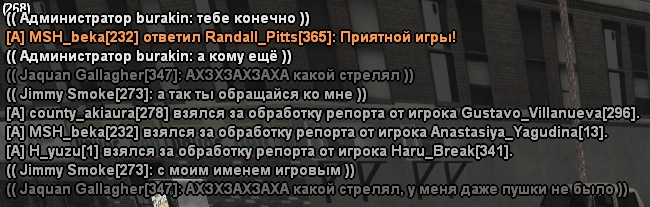 Баллы в студию, хочешь оспорить вердикт SA-ES менеджмента и технической администрации? Пиши жалобу на их ник-неймы, а так-же мой.А что теперь правила иные? Игроков фангеймеров которые мешают игре нельзя убивать? Тут на лицо и по скринам видно что это игрочишки с 10 бутылок, которые решили переместиться на место игры фракции паренька. Ребята не то что слабо играют, или пытаются вывести провокациями, а даже нарушают портя еще больше атмосферу и игру. Как тебе не стыдно парень? Тебе вот понравилось когда я твоего кента шотнул "нарушив правило"? - нет, конечно. Тебе сто процентов хотелось меня убить, или чтобы меня заблокировали. (Что ты и сделал глупейшим методом.. lmao)