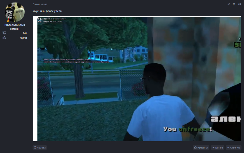 Суть жалобы: Человек залил жалобу на нашу фракцию и приложил видеозапись на которой запечатлил использование софта своей персоной, особо расписывать нечего, все видно на скринах ниже и перезалитом мною видеороликом ниже