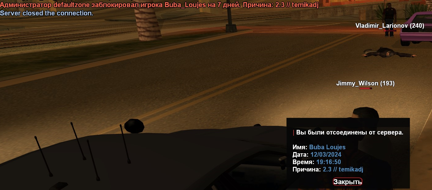 Суть жалобы: На меня напали два человека, я сделал выстрел по одному из них, парень ещё несколько раз с кулака меня ударил и я его во 2 положил. 2.3 нет, админ некомпетентно подошёл к ситуации