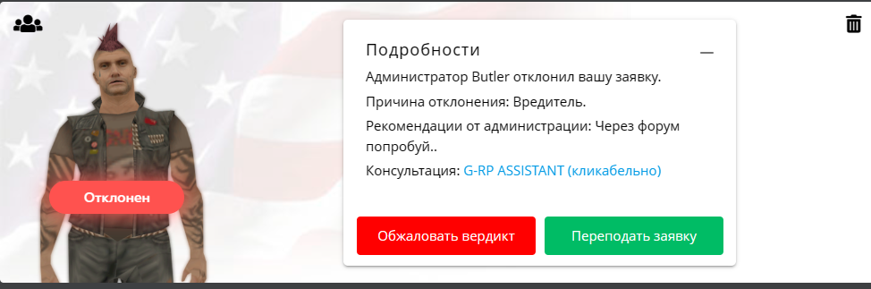 Суть жалобы: Фактический статус вредителя пришел с сегодняшней ночи, когда улетело в бан 2 моих персонажа. Это была локальная серия действий с некоторыми администраторами и под их одобрением. Признаю ту глупость, что я натворил. На новом же персонаже желаю понемногу отыгрывать на интересных площадках, без всякого бреда.
