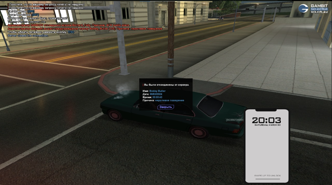 Суть жалобы: Я просто ездил и вдруг выдают бан за неролевое.