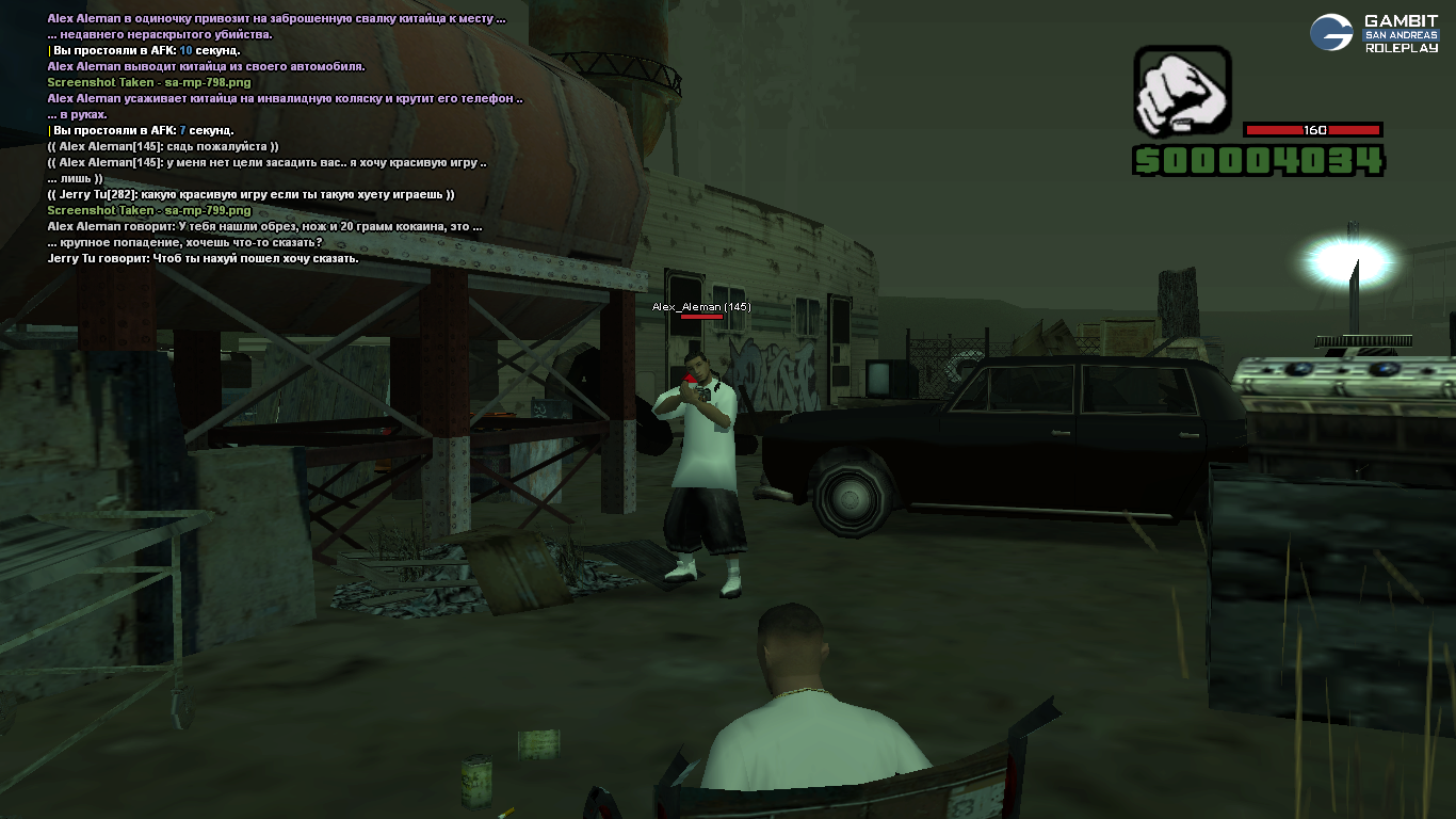 Идёт активная игровая площадка. Ты, вместо того, чтобы отыграть нормально придумал это "продай мне что-то у тебя есть что-то да я знаю!" - и потом ещё жалуешься нам в пм об отказе? ТЫ слишком много хочет для своей персоны. Найди кого-то другого, а не вот эти вот мнимые текста и слова о том, что мы отказываемся. Нет, мы не отказываемся, просто Алекс - не грамтный детектив, который не умеет общаться с бандитами.