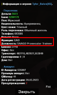 Ссылка на доказательства наказания/нарушения: https://gambit-rp.ru/account/character/535007