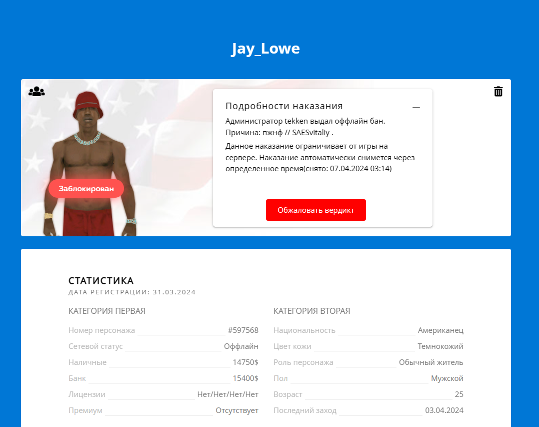 Дата и время наказания/нарушения: 4 Апр 2024