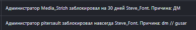 В итоге ему дали всего 7 дней за отказ от игры! А мне аж 30 дней за ДМ которого не было, с нашей стороны было рп, с его ноль, как адимин написал потом моим игрокам - забанил якобы я без причины стрельнуть решил, нормально