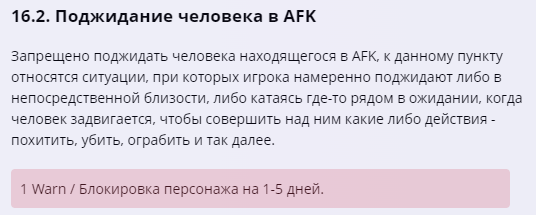 Не стоит обманывать администрацию, и включать из себя дурачка, когда у тебя нормально спросили: почему ты пытаешься ограбить человека который находится в афк - твой ответ: я когда выходил из байка он не был в афк.