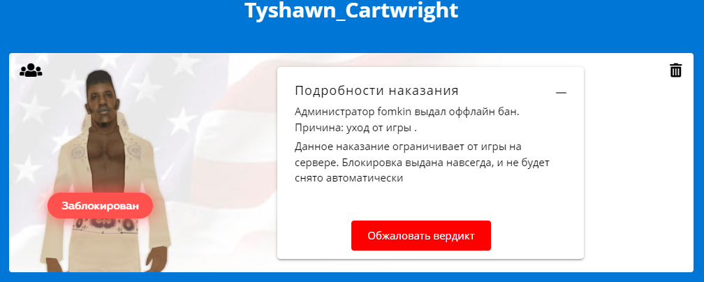 Суть жалобы: Моё первое нарушение, уход от игры, разбаньте пожалуйста, думаю перманентный бан слишком жестокое наказание. К тому же за тот же отказ от игры бан дают на 5-10 дней, а это можно сказать тоже самое.