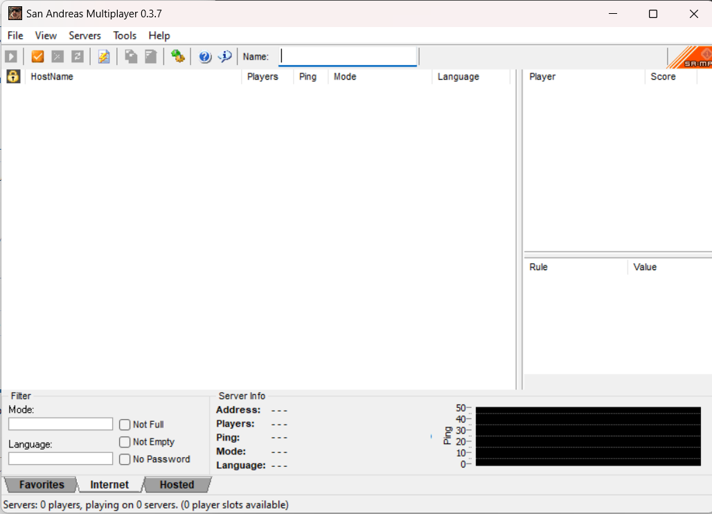 Чувачки помогите, мб было у кого. Запускаю самп а там вообще ничего не работает. Даже серверов нет во вкладке интернет.