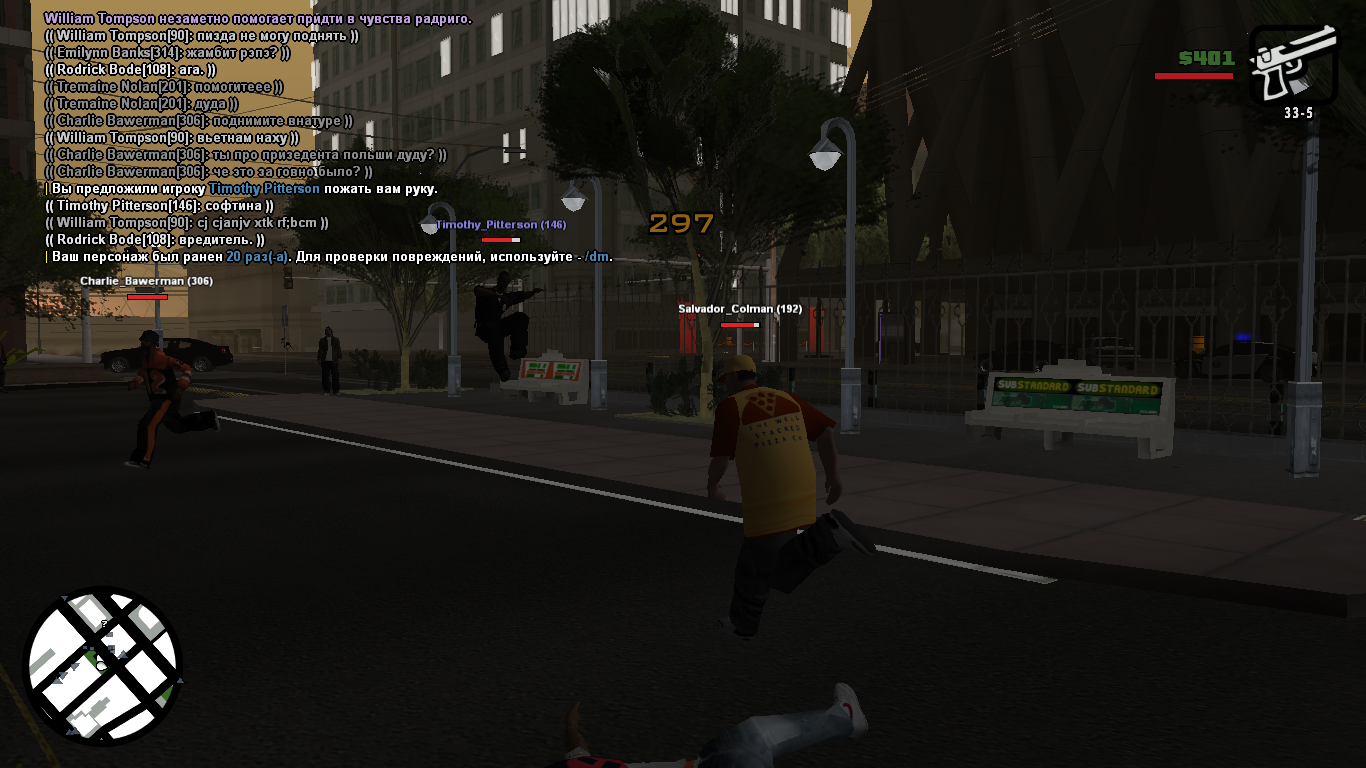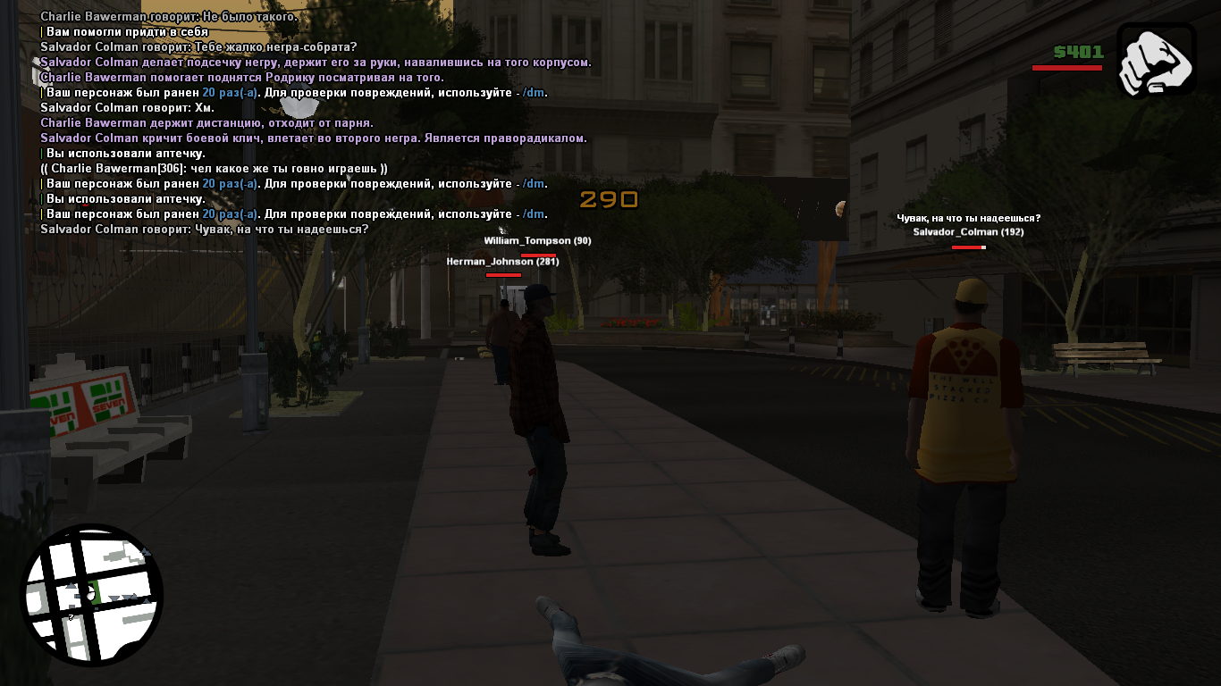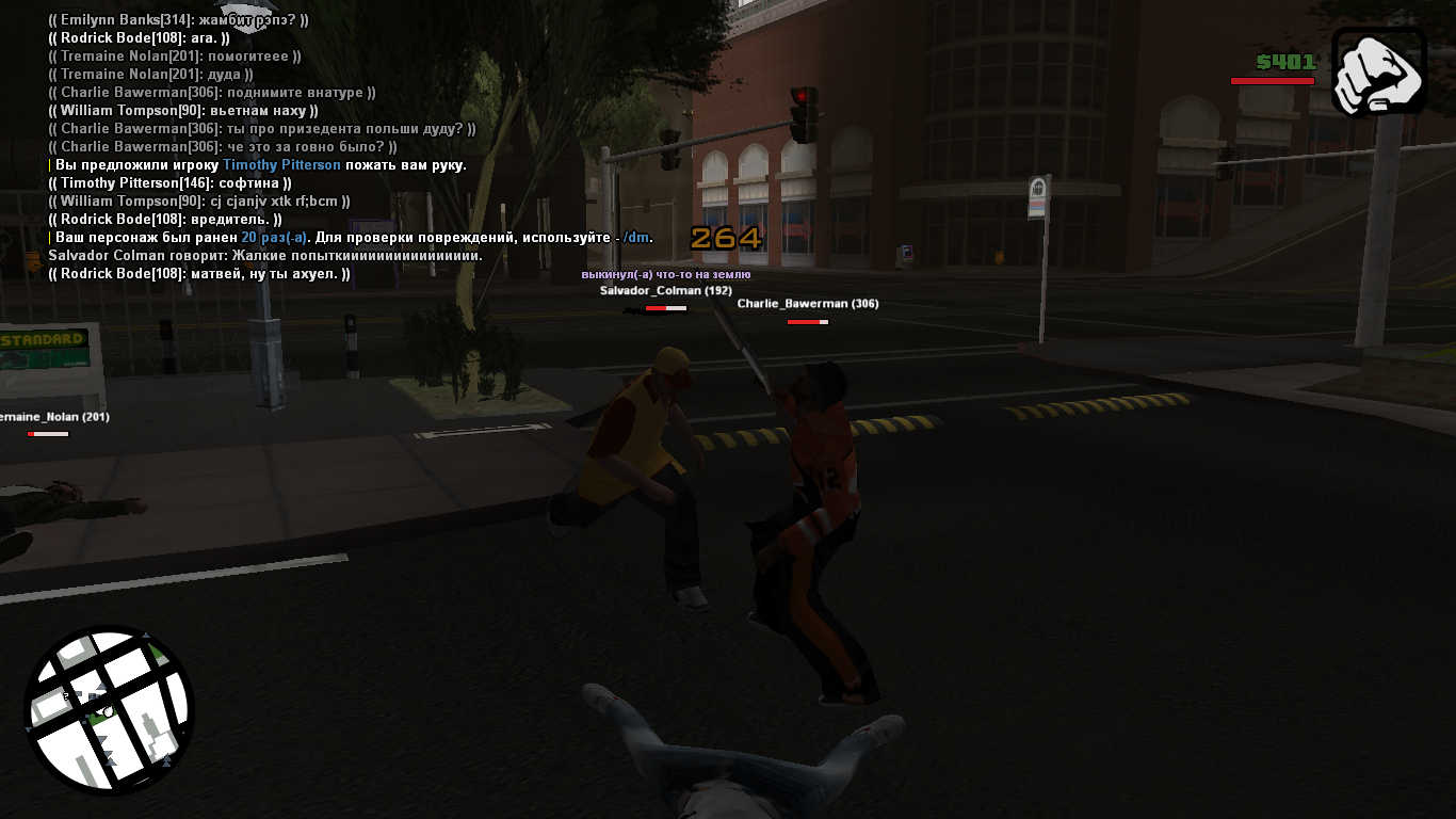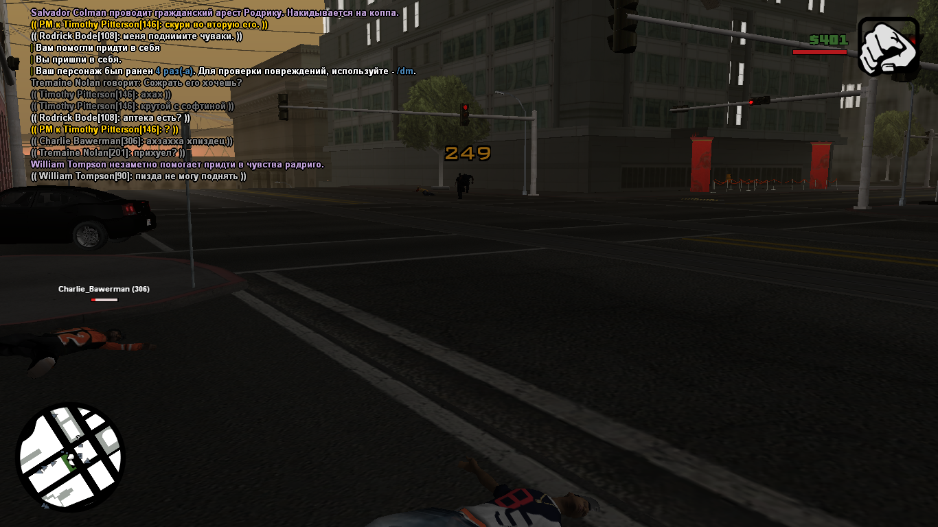 Играли ситу вдвоём, никого не трогали. Тут подъезжает этот игрок и выдаёт то, что видно на скринах. Угрожает баном, далее вырывает отыгровку "Salvador Colman банит игрока.", начинает меня избивать. Зову админов, не успевают. Не виню их. Прошу наказать игрока.