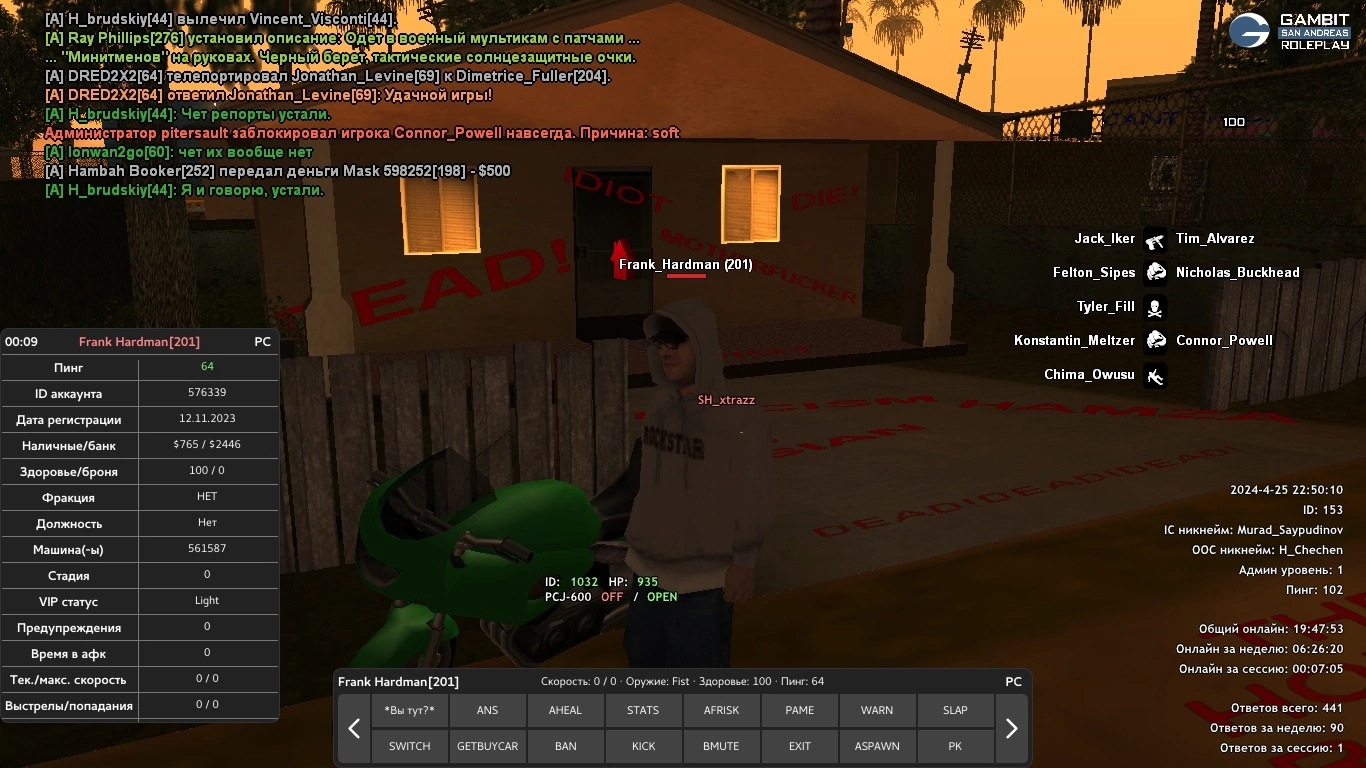 Суть жалобы: Из личной неприязни изъял у меня лицензию на оружие, все наркотики, после пытался заставить меня заспавнить мотик, дабы изъять ещё и всё оружие, которое в начале тот решил не изымать. После вместе со своим напарником - Michael_Lewis, оскорблял меня в /b. Также юзал /bmut прямо на сите, то бишь сам же и блокировал ООС игрокам, чтобы не слышать горькую правду про себя