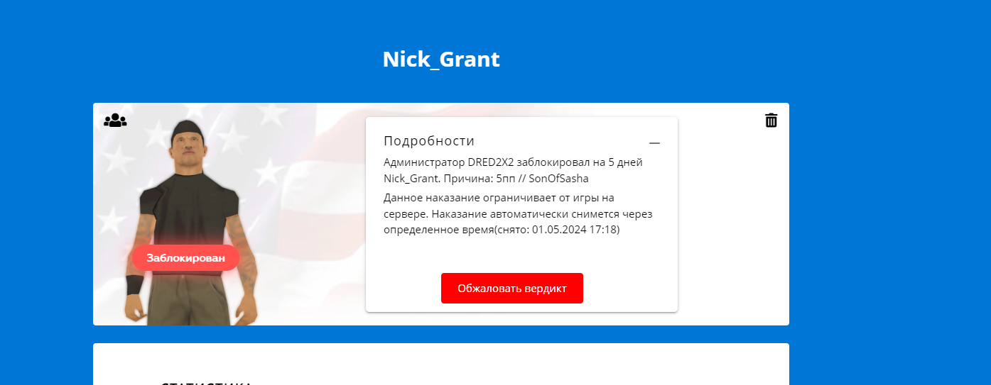 Суть жалобы: не согласен с наказанием, хочу фрапс с моим нарушением, в прошлой жалобе прикрепил не тот скрин с лк случайно