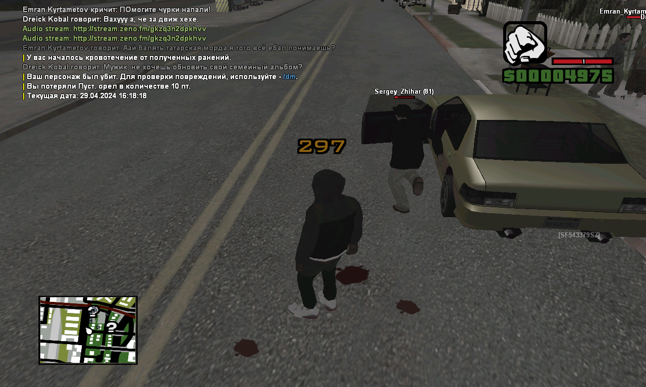 Суть жалобы: короче такой момент стоял с пацанами общался, тут это существо на меня нападает в спину, я ему даже отпор успел какой то дать, прям такой поступок некрасивый ДМ - карается пермаментной блокировкой, ранее от него были провокации, сейчас же вообще без причины меня захуярил, ниже дам скрин