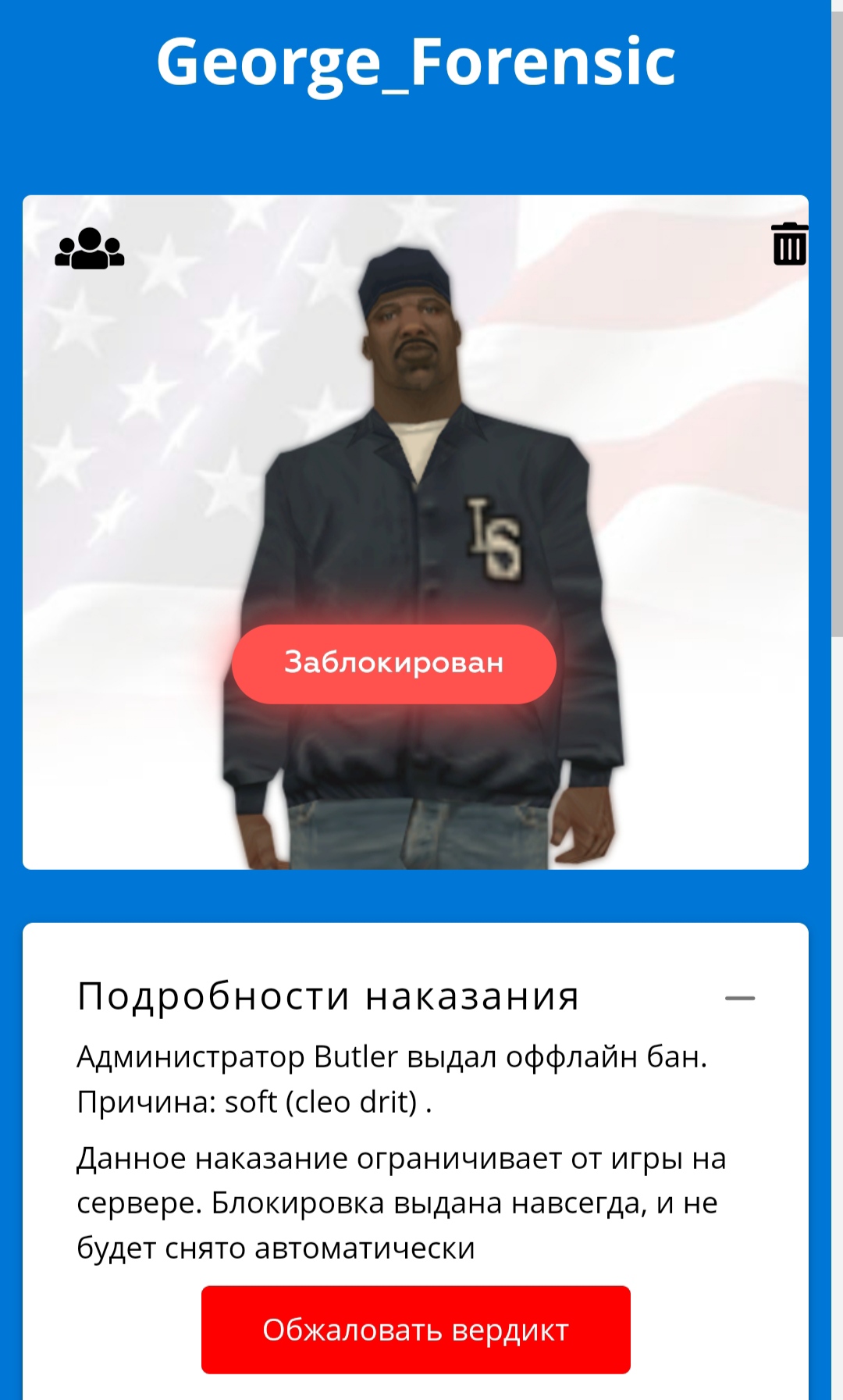 Суть жалобы: Приветствую. Прошло уже более месяца с момента моей блокировки. Искренне прошу амнистировать меня, я клянусь удалить клео дрифт и более не скачивать ни единого клео, который как либо помешает игрокам. Обязуюсь не нарушать в принципе больше. В свои оправдания могу сказать следующее: