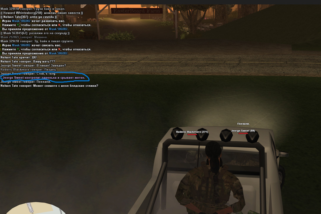 У меня ХУД фракции там находится, ты себя слышишь? Мы ехали просто поиграть и увидели такую хуйню. Может тебе дать почитать переписку в вк где я чудиков играть зову и они заходят? Хаха! Ну ты, паря, реально погнал. Какие я СС приложу рандомной ситуации? ХДДДДДДДДДДДДД вы че реально с ума по сходили?