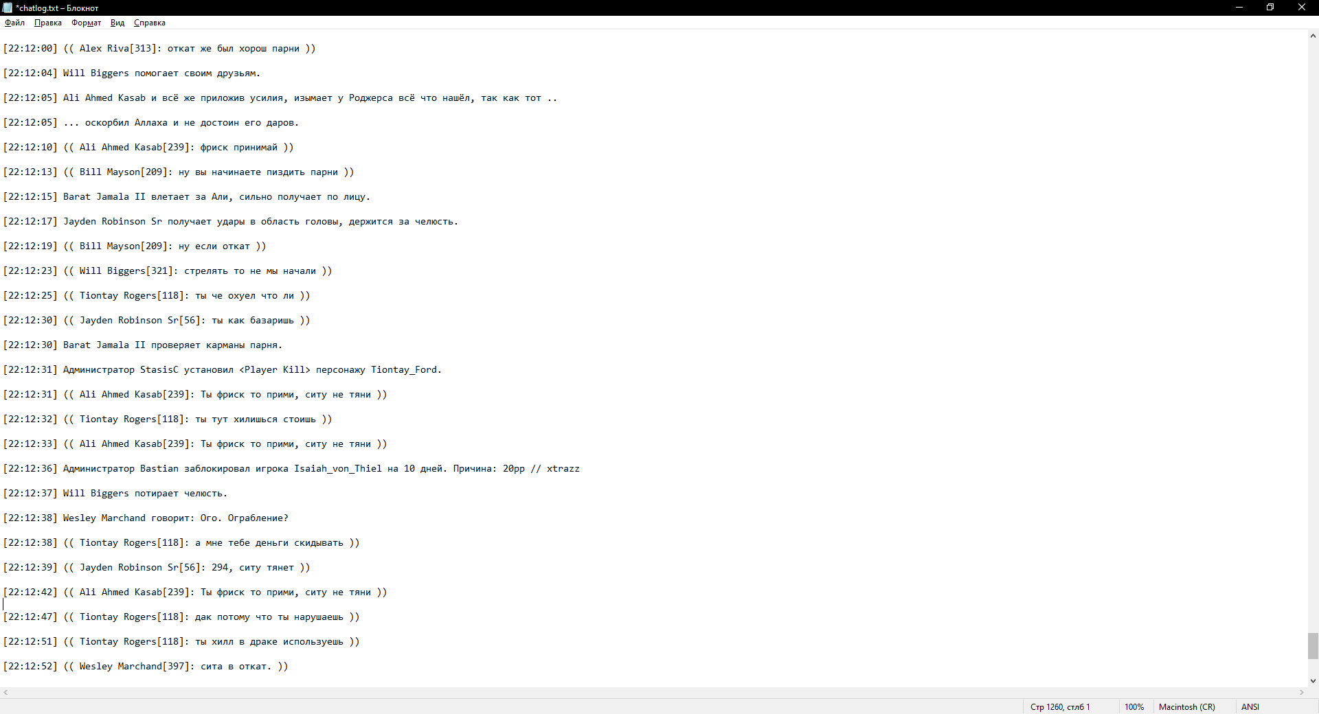 Суть жалобы: сначала началась драка на том месте, которая выросла в перестрелку, там были ВСЕ кому не лень, даже копы, ну и что потом? Ситуация откатывается из-за варна, всех подняли, все довольны, пока я писал в /rep чтоб админ подняли соигрока, его поднимают, go next.
