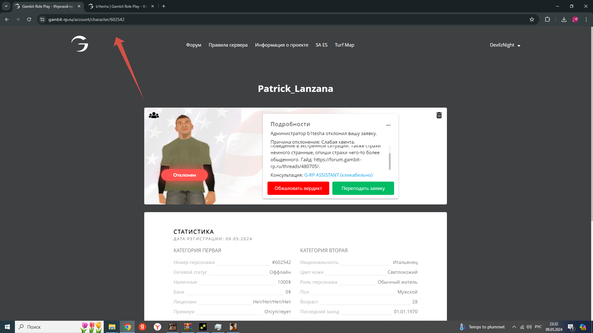 Дата и время наказания/нарушения: 9 Май 2024