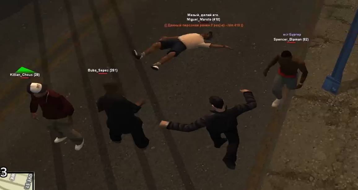 Суть жалобы: У мена произошла небольшая драка 2 vs 2. Спенсер в ней хилился с помощью бургеров. (см. скриншот)