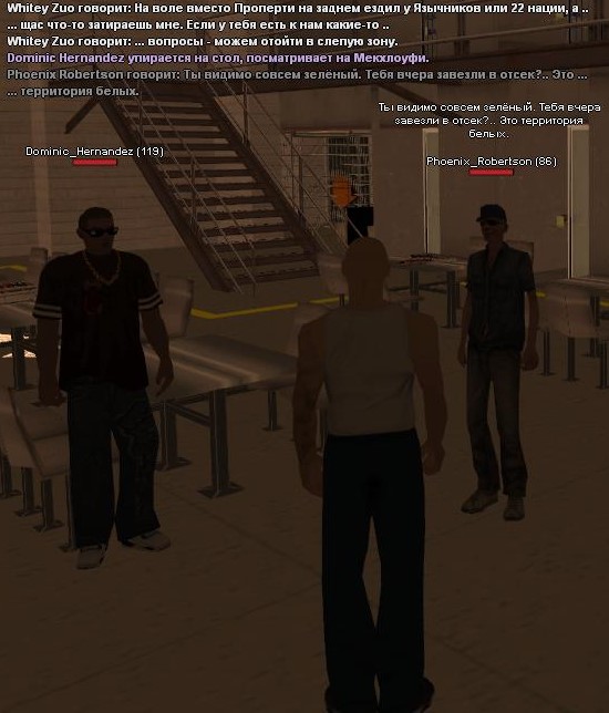 Садок. Я знаю за игру в тюрьме и умею её играть. Так как я не намерено попал в Садок, а мне въебали 600 минут я нашел соигроков не соответствующих лору "держись своей расы" (мой персонаж китаец, а соигроки - мекс и негр). Произошла словесная перепалка с игроком Pheonix_Robertson, после чего он ушёл в камеру, отхилился и встал в афк. Заходит в игру игрок Spencer_White и вытянул нас на разговор в левую камеру. Начинается драка и игрок Spencer_White в экстренной ситуации достает нож, начинает всех резать. А теперь к самой сути жалобы:
