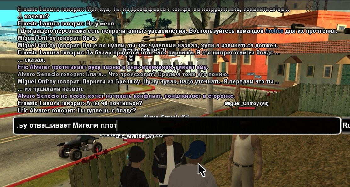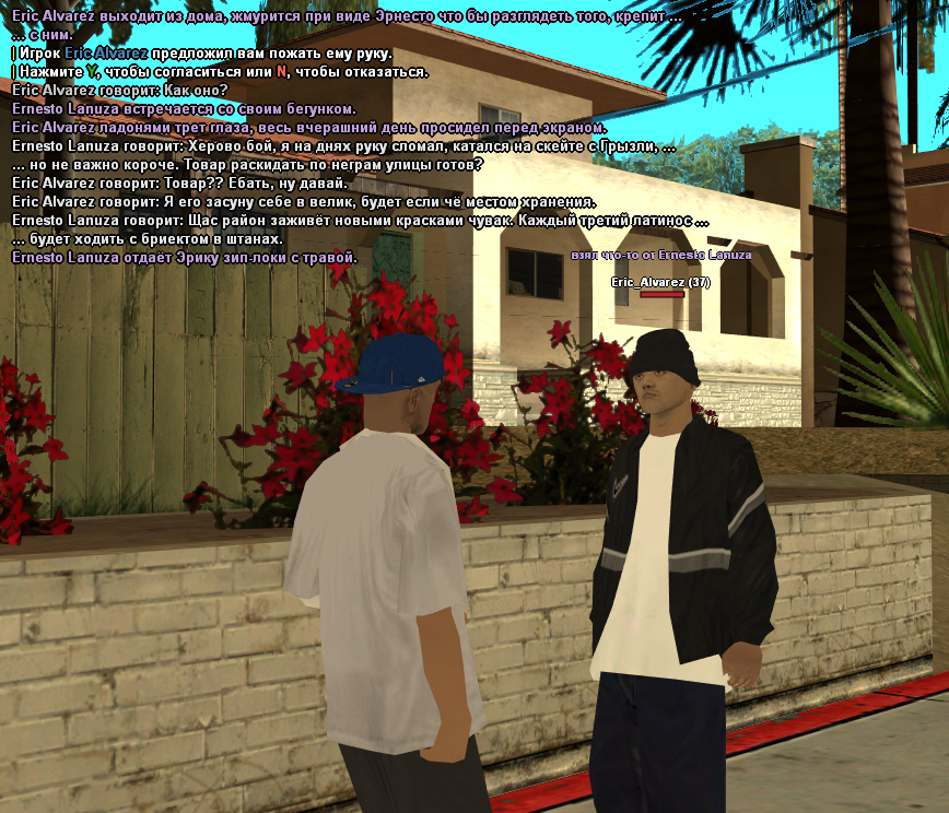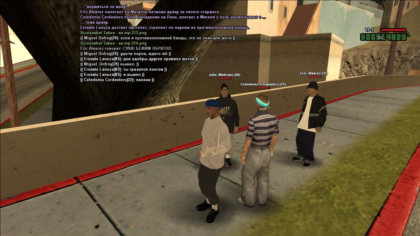Суть жалобы: Я с кентом приехал на худ к моим кентам мы там общались и купили наркоты потом начался конфликт и Ernesto Lanuza начал оскорблять наше движение типо и т.д. (на скринах видно) мы не стерпели и ударили по одному разу поему начали отходить назад как началась драка 4 против и в этой драке Ernesto Lanuza вытащил ган и открыл по нам огонь хотя нас больше и тех. драку они первые начали