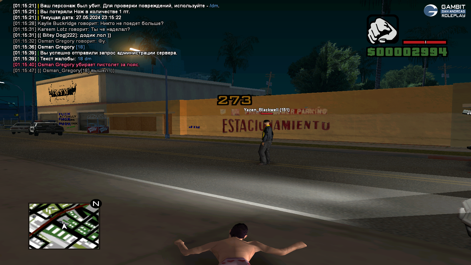 Суть жалобы: без прчиины убил, вел себя неадекватно, после того как шотнул меня, кто-то начал стрелять по нему и он вышел.