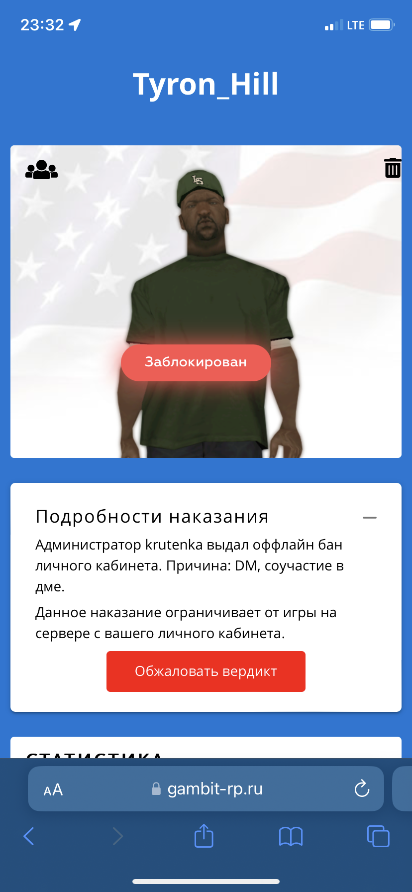 Суть жалобы: Забанил личный кабинет за ДМ, не согласен с этим, попрошу как-то аргументировать наказание