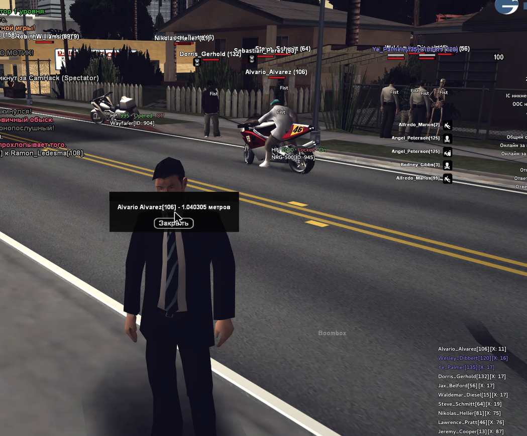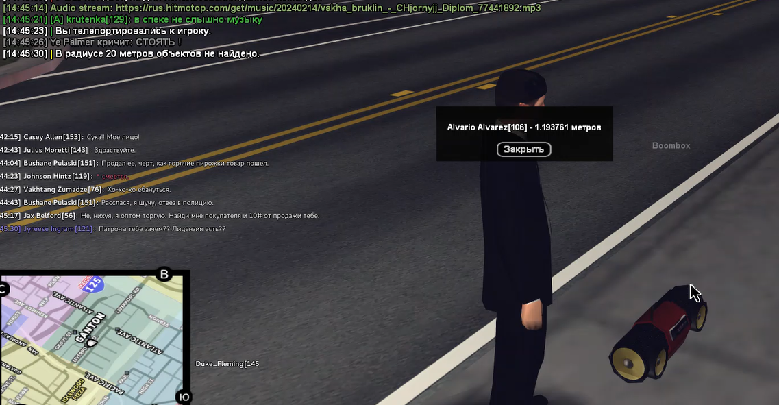 Суть жалобы: дали пред по 2.1 админ удтверждает за то что включил на Боомбуксе песню Ваха бруклин хотя на проекте не сказано какую музыку слушать и вообще не слова об этом нету в правилах, ну дал пред по причине 2.1 я катался по району и видел как корешей вяжут и подьехал, но не сказал ни слова просто наблюдал, зачем говорить что из-за вахи бруклина наверное у админа юмор сильный.