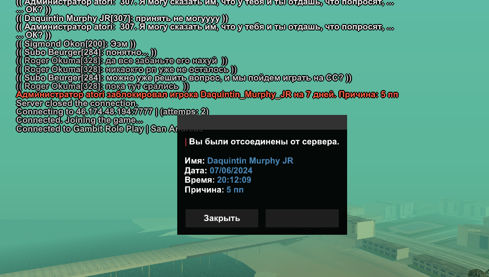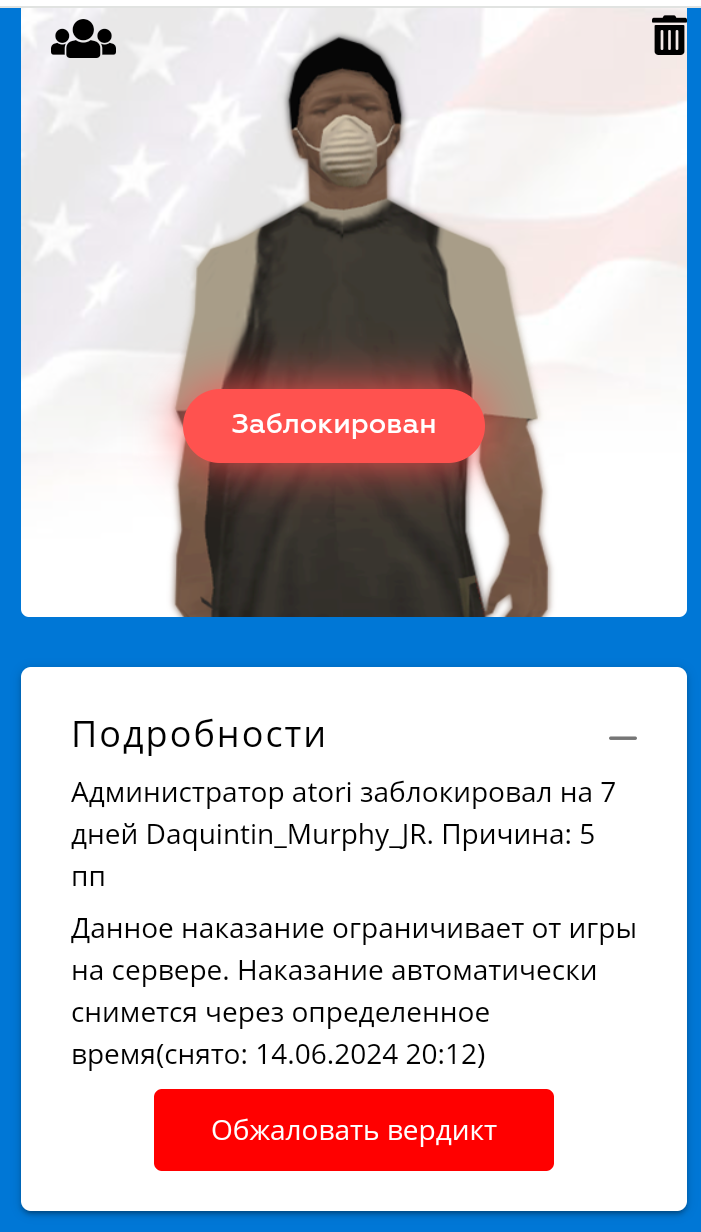 Дата и время наказания/нарушения: 7 Июн 2024