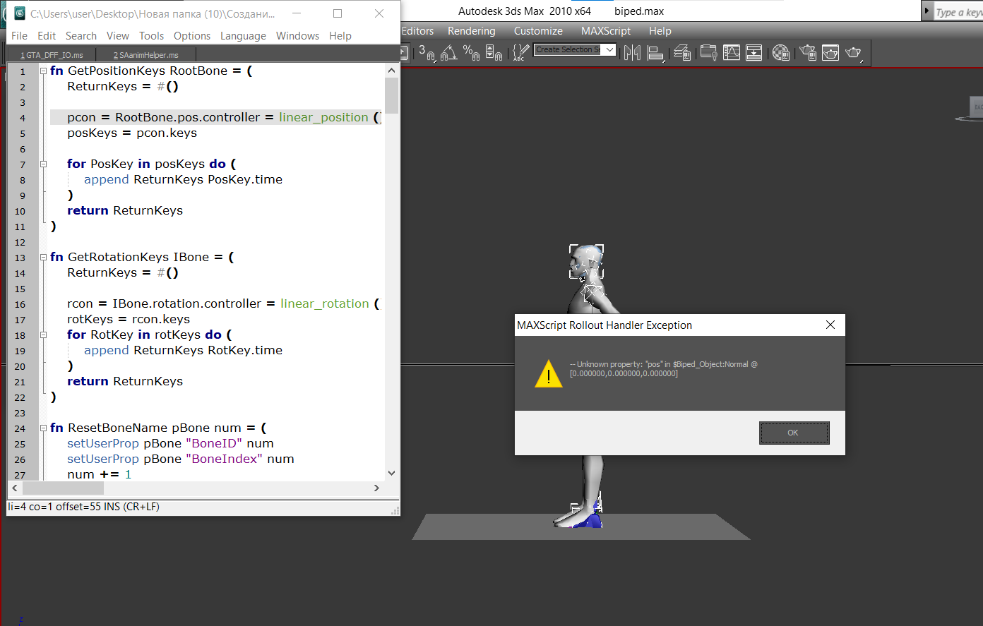 как раз по этому видосу и делаю, создаю ключи все дела, и на моменте когда надо развернуть бипеда на back ставлю значение 90 в ротейшин з и нажимаю ротейт и выдаёт эту ошибку